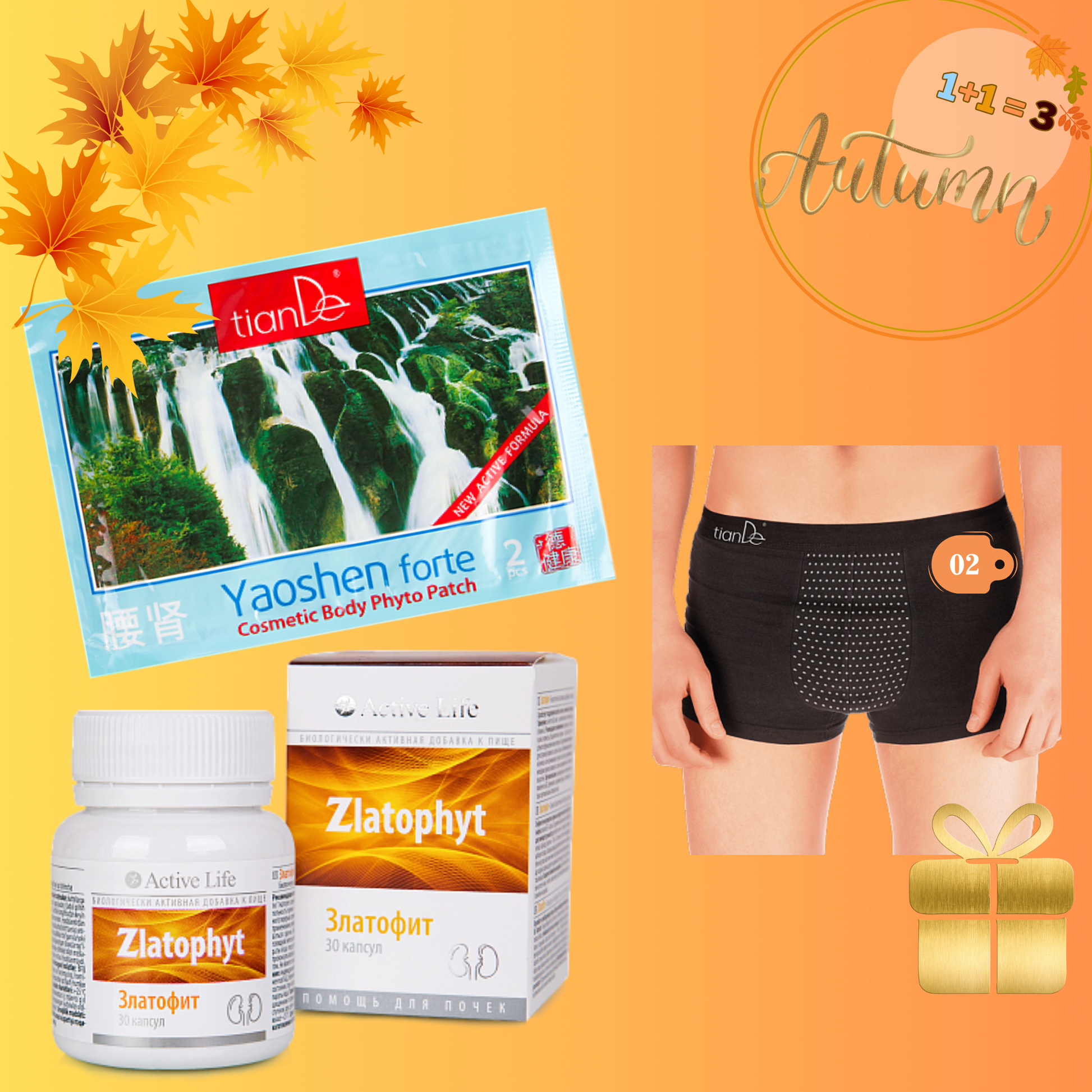 Αγοράστε 2 προϊόντα: συμπλήρωμα διατροφής Zlatophyt** + φιτοπάτς σώματος Ιαοσέν Φορτέ και με 0,05 € αποκτήστε αντρικά εσώρουχα με τοπική εφαρμογή τουρμαλίνης, μέγεθος L