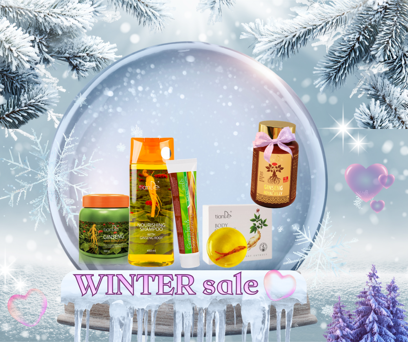 Αγοράστε τέσσερα σκευάσματα: θρεπτικό σαμπουάν με ρίζα ginseng + αποκαταστατικό βάλσαμο με εκχύλισμα ginseng + σαπούνι σώματος με τζίνσενγκ + οδοντόκρεμα Πράσινο τσάι + ginseng Sanchi και με 0,05 € αποκτήστε το συμπλήρωμα διατροφής Τζινσενγκ και βασιλικός πολτός*.