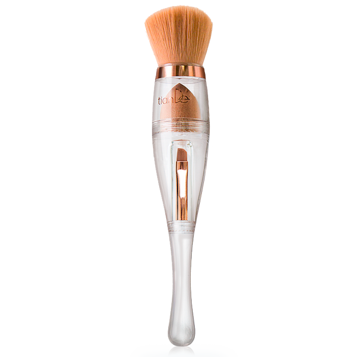 Ένα σφουγγάρι για βάση τόνωσης, ένα μεγάλο πινέλο για πούδρα και ένα μικρό πινέλο για κραγιόν και φρύδια - για τέλειο μακιγιάζ, χρειάζεστε δώδεκα πινέλα διαφορετικού μεγέθους ή - ένα μόνο πινέλο "3 σε 1" από την TianDe.